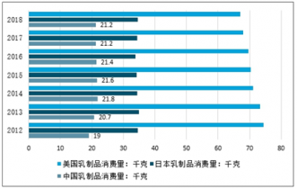 2012-2018年中國與日本、香港的地區(qū)人均乳制品消費量對比情況