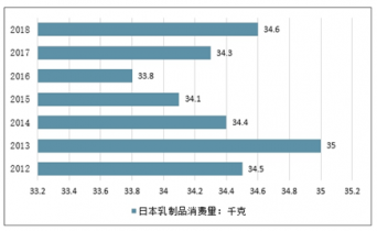 2016-2018年日本人均乳制品消費量對比情況
