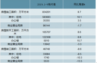 2019年1-9月全國房地產(chǎn)施竣工面積及新開工面積