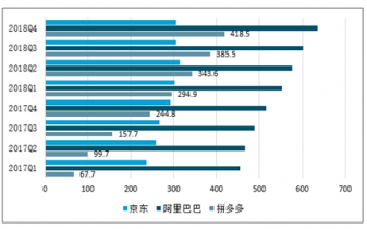 三大電商平臺活躍用戶數(shù)(百萬人)