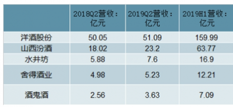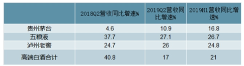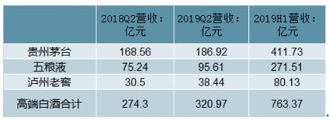 2018年Q2-20191H1中國高端白酒品牌營業(yè)收入