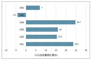 中國鈷酸鋰正極材料季度出貨量同比增長走勢(shì)