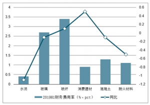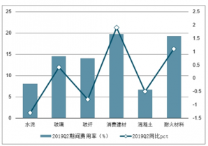 2019H1水泥、混凝土、耐材費用率整體有所改善。2019年上半年費用率有所改善的板塊分別為水泥(-2.5pct)、混凝土(-0.7pct)及耐材(-0.1pct),其中水泥及耐火材料板塊財務費用率改善最為明顯。消費建材的費用率同比有所提升(+1.5pct),玻璃、玻纖費用率維持穩定。