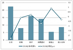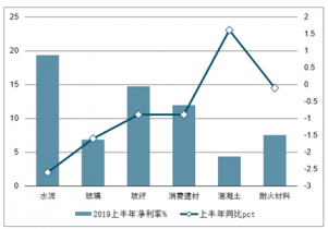2019年上半年建材子板塊凈利率及同比增長走勢