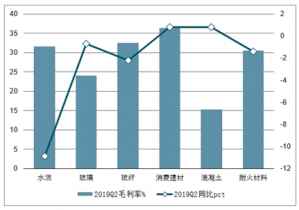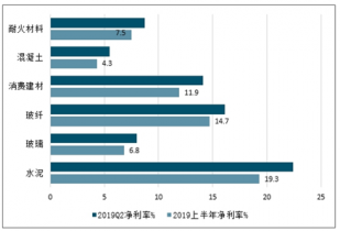 2019H1建材行業毛利率32.0%,同比下降3.0pct;凈利潤率15.3%,同比下降1pct。2019Q2行業毛利率為30.5%,同比下降5.9pct,環比提升0.7pct;凈利率17.7%,同比下降0.9pct,環比提4.8pct。