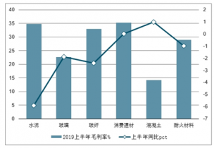 2019年上半年建材子板塊毛利及同比增長走勢