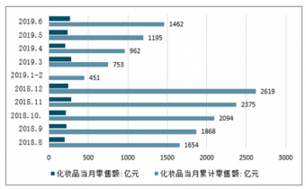 2018-2019年全國化妝品零售額情況