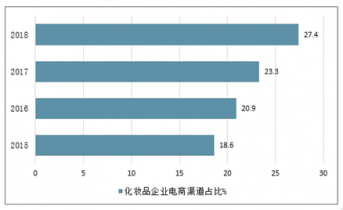 2015-2018年中國化妝品企業電商渠道占比情況