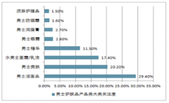 圖表2019年中國男士護膚品產品關注度