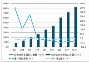 2019年1-10月中國家用電熱水器進出口數(shù)量及進出口金額統(tǒng)計表