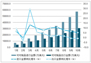 2019年1-10月中國可可制品進出口數(shù)量及進出口金額統(tǒng)計表