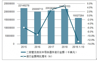 2019年1-10月中國二極管及類似半導(dǎo)體器件進口數(shù)量及進口金額統(tǒng)計表