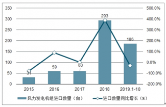 2015-2019年1-10月中國(guó)風(fēng)力發(fā)電機(jī)組進(jìn)口金額及增速趨勢(shì)圖