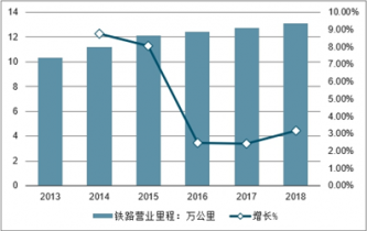 2013-2018年中國鐵路營業(yè)里程走勢圖(單位:萬公里,%)