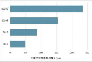 近年來(lái),居民精神文化需求持續(xù)增長(zhǎng),內(nèi)容生產(chǎn)去中心化程度進(jìn)一步提高,文化內(nèi)容產(chǎn)業(yè)相關(guān)賽道快速發(fā)展。2017年,中國(guó)知識(shí)付費(fèi)產(chǎn)業(yè)規(guī)模為49.1億元,同比增長(zhǎng)近三倍。伴隨著市場(chǎng)教育程度逐步提高、愿意為優(yōu)質(zhì)知識(shí)服務(wù)付費(fèi)的人群基數(shù)不斷增長(zhǎng),未來(lái)三年,知識(shí)付費(fèi)產(chǎn)業(yè)規(guī)模還將保持高成長(zhǎng)性持續(xù)擴(kuò)張,預(yù)計(jì)到2020年中國(guó)知識(shí)付費(fèi)產(chǎn)業(yè)規(guī)模將達(dá)235億元。