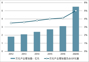 2012-2020年中國(guó)文化產(chǎn)業(yè)增加值及占GDP比重情況預(yù)測(cè)