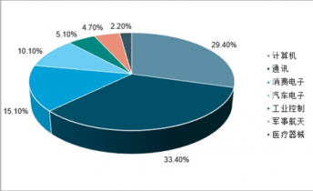 印制電路板被廣泛應用于通信、計算機及周邊、消費電子、IC封裝、工業/醫療、汽車電子和軍事/航天等主要領域。2018年全球通訊、計算機、消費電子、汽車電子、工業控制、軍事/航天和醫療器械等行業用PCB應用市場占比分別為33.4%、29.4%、15.1%、10.1%、5.1%、4.7%和2.2%,通訊、計算機和消費電子的PCB應用市場占比合計達77.9%,占據了PCB較大的應用市場。
