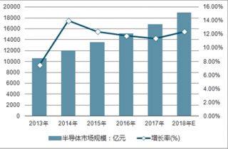 2013-2018年中國(guó)半導(dǎo)體市場(chǎng)規(guī)模及增長(zhǎng)率