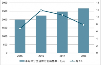 2015-2018年中國半導體分立器件行業(yè)銷售額及增長情況