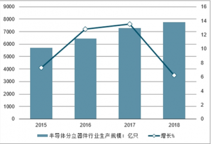 2015-2018年中國半導體分立器件行業(yè)生產(chǎn)規(guī)模及增長情況