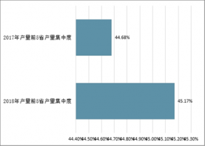 2017-2018年中國軟飲料前5省產(chǎn)量集中度