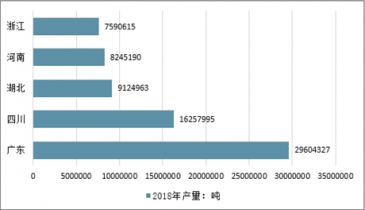 2018年中國(guó)軟飲料前5省產(chǎn)量