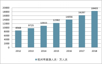 數據顯示,2010年杭州旅游收入突破1000億元,此后杭州旅游收入不斷增長,2012年杭州旅游收入1392.3億元。2018年杭州旅游收入突破3500億元,全年收入達到3589億元,同比增長18%。2018年杭州旅游人數18403萬人次,同比增長13%。