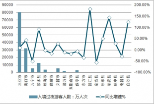 2018年12月海南省各市縣接待入境過夜游客數量及同比增長
