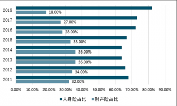 人身保險占比原保險保費比重64%占比從2013年持續增長,針對近幾年人身保險公司業務中心從低價值臨床轉向高價值保障型業務,著力優化業務結構,行業原保險費收入增長加快,人身險保費收入到2017年增長至73%。