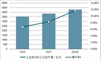 2016-2018年中國(guó)工業(yè)自動(dòng)化工業(yè)總產(chǎn)值及增長(zhǎng)率