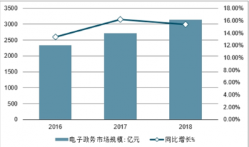 2016-2018年中國(guó)電子政務(wù)市場(chǎng)規(guī)模及同比增長(zhǎng)走勢(shì)