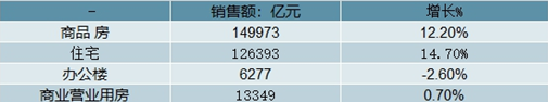 2018年全國(guó)房地產(chǎn)銷(xiāo)售商品房共銷(xiāo)售149973億元,同比增長(zhǎng)12.2%。