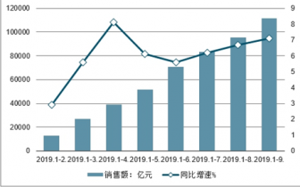 2019年1-9月商品房銷售面積及增速