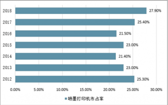 2012-2018我國(guó)噴墨打印機(jī)市占率