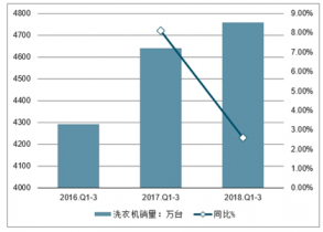 2016-2018年中國洗衣機銷量及增長走勢