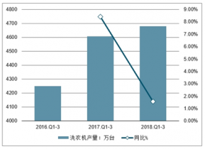 2016-2018年中國洗衣機產(chǎn)量及增長走勢