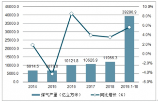 10月中國(guó)煤氣產(chǎn)量為3878.3億立方米,同比增長(zhǎng)1.2%;2019年1-10月中國(guó)煤氣產(chǎn)量為39280.9億立方米,同比增長(zhǎng)5.6%。