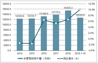 2019年1-10月中厚寬鋼帶產量及增速統計表