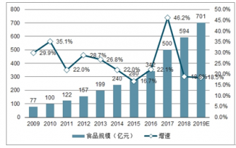 2009-2019年中國寵物食品市場規(guī)模及增速預(yù)測