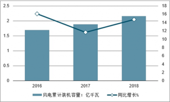 2016-2018年中國風電累計裝機容量及增長