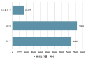 2017-2019年1-2月中國(guó)原油進(jìn)口量及增長(zhǎng)情況