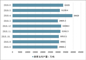 2018-2019年6月全國(guó)原煤產(chǎn)量情況
