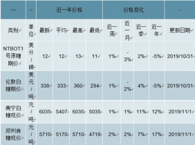2019近一年中國(guó)糖價(jià)格情況