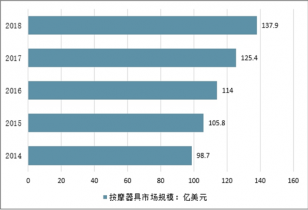 近年來,全球按摩器具市場持續(xù)增長,2015年首次超過100億美元,2017年,全球按摩器具市場規(guī)模超過125億美元,到2018市場規(guī)模一直維持增長趨勢。