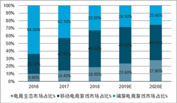 2016-2020年中國細分電競市場規模占比