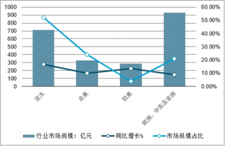 2018年全球各區(qū)域游戲市場規(guī)模、市場規(guī)模占比及同比增長走勢
