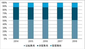 2014-2018年中國社會物流總費(fèi)用各費(fèi)用模塊占比情況