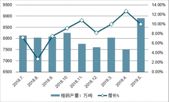 2018-2019年5月全國粗鋼產(chǎn)量及增長情況