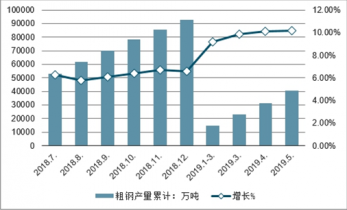 2018-2019年5月全國(guó)粗鋼產(chǎn)量及增長(zhǎng)情況