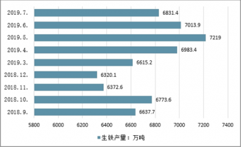 2018-2019年7月全國生鐵產(chǎn)量情況